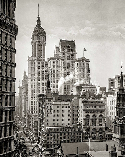 The 217-foot Tatham Tower at 82 Beekman Street, seen in 1905
