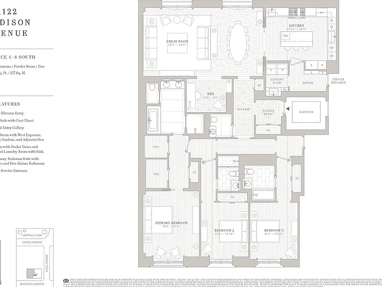 " Poised to become the Upper East Side’s most expensive condominium by starting price, the 22-story limestone-wrapped tower will introduce 26 expansive residences to the corner of Madison Avenue and East 84th Street, just steps from Central Park and the Metropolitan Museum of Art."