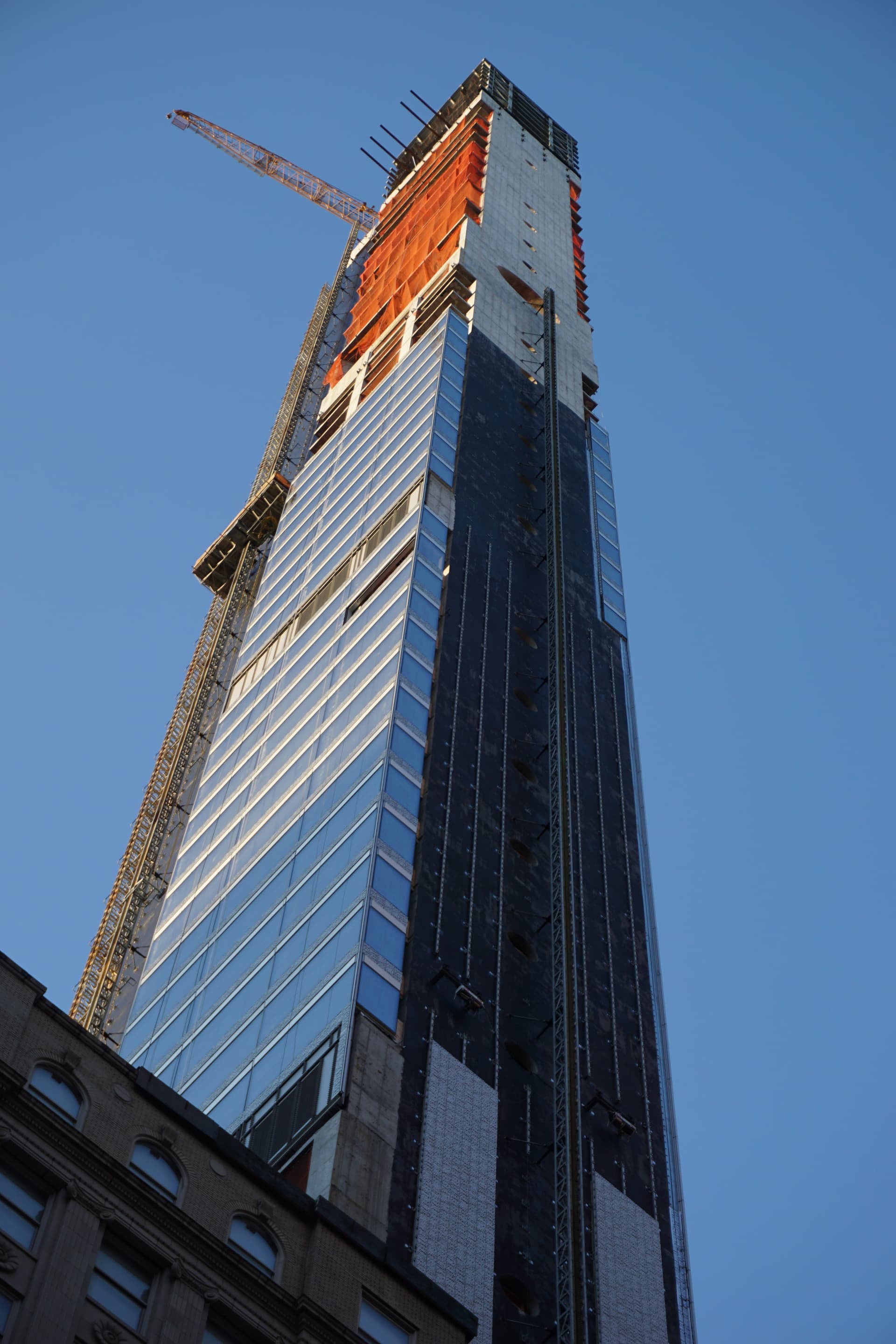 Don’t know why the cladding hasn’t progressed. There were alot of crated panels waiting at street level that have been there awhile. The crane is definitely moving but it looks likes work is focused on the crown atm.