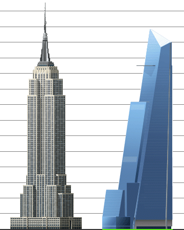 I mean the ESB already makes quite an impact, yet it’s less massive (although by no means skinny) and sits about 1.2 miles east from the Hudson.