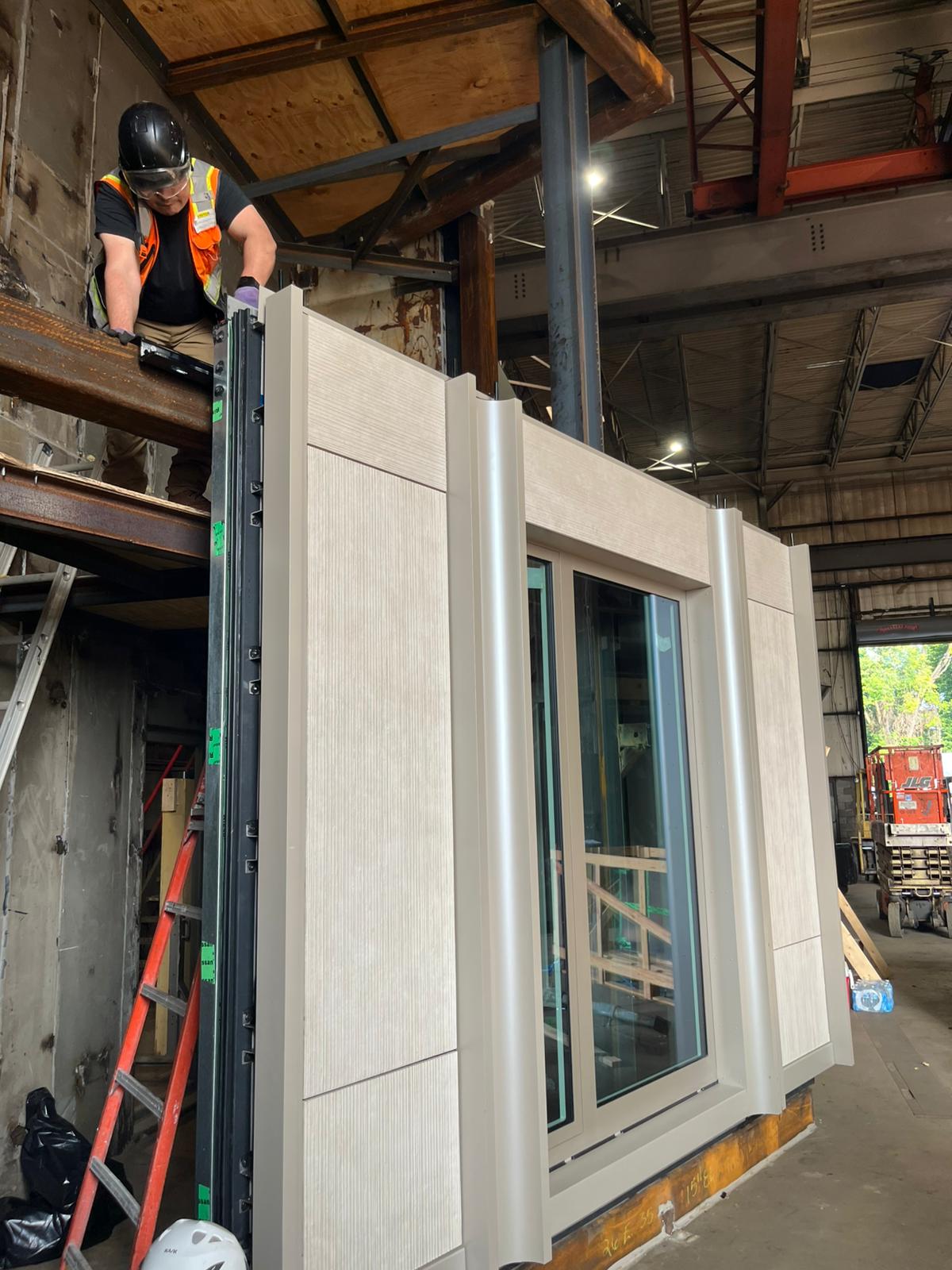 Those prefabricated panels appear to be solidly constructed components for the building facade and the windows; and they are quite nice looking as well.