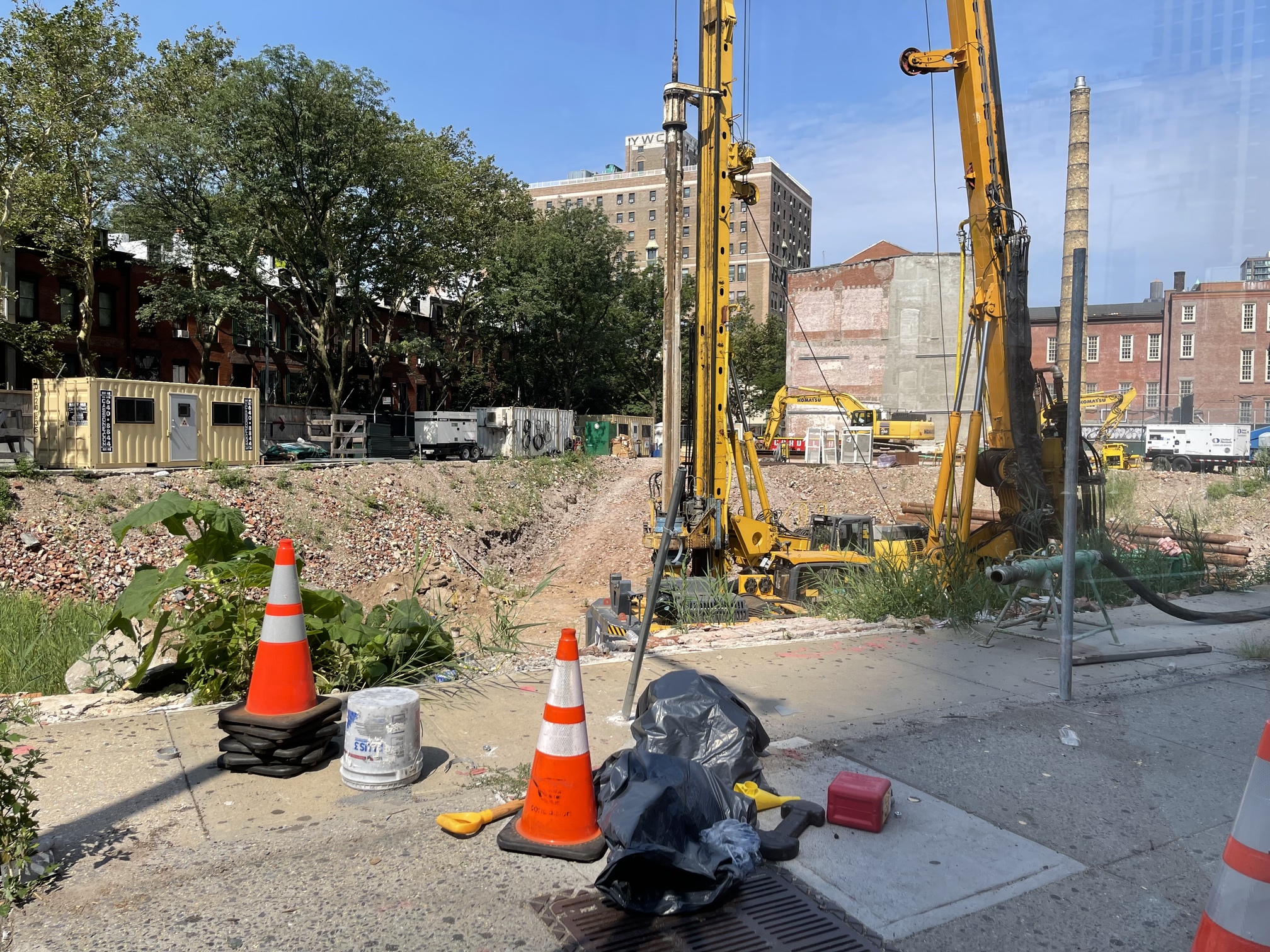 A lot going on. The sidewalk along Flatbush is closed and one lane is being converted into a covered construction walkway.