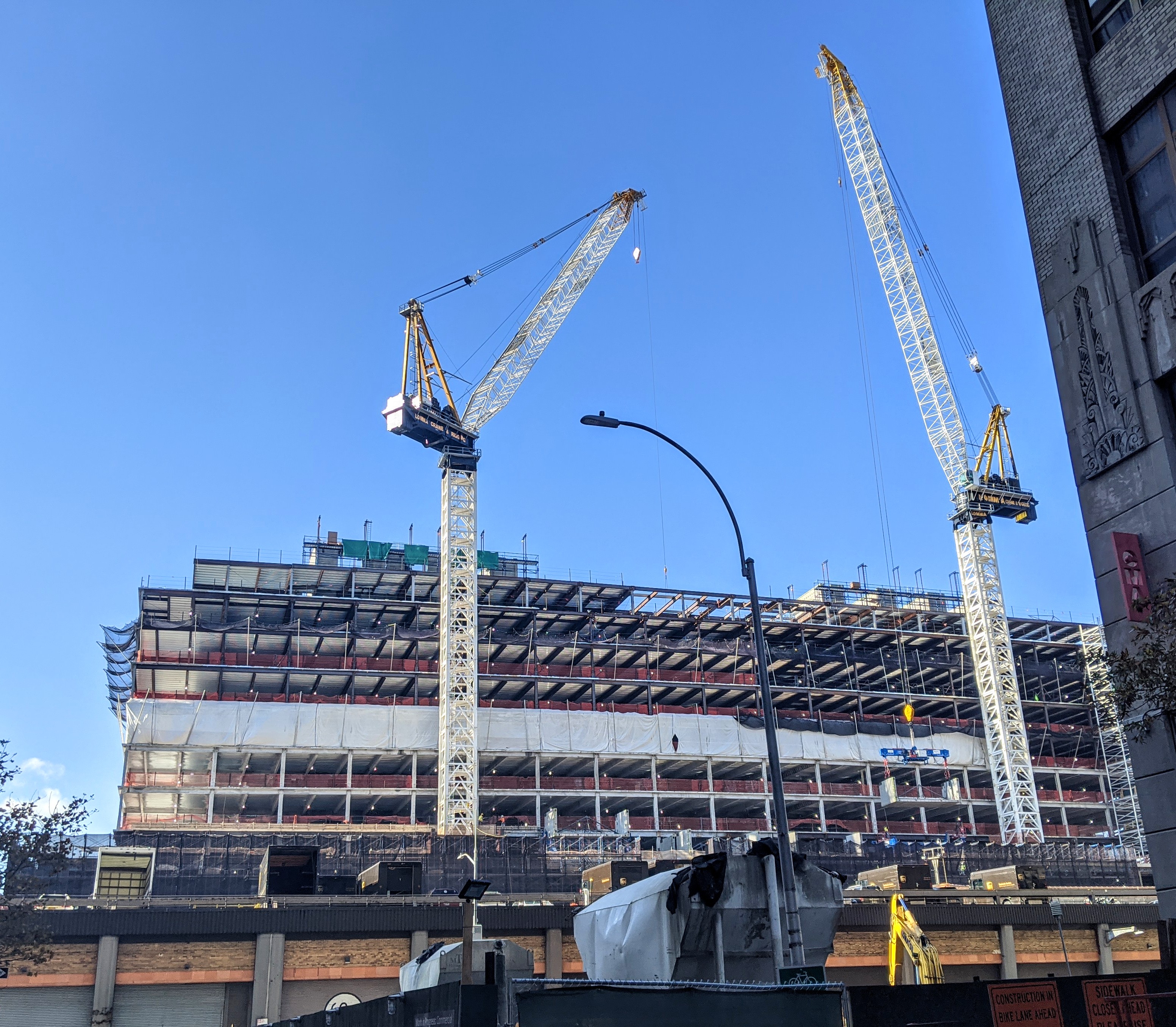 Westbrook Partners and Atlas Capital Group retained the block between Clarkson and Houston Streets; and with that end of St. John’s demolished they could build a 430-feet high residential tower, as previously approved in 2016. Thirty percent of the units (475 apartments) were to rent at below-market rates through a housing lottery; part of the tower was to be geared towards “older tenants.” There would also be retail space and a possible 15,000-square-foot recreation center. Strangely, no new renderings have surfaced since those 2016 approvals.
