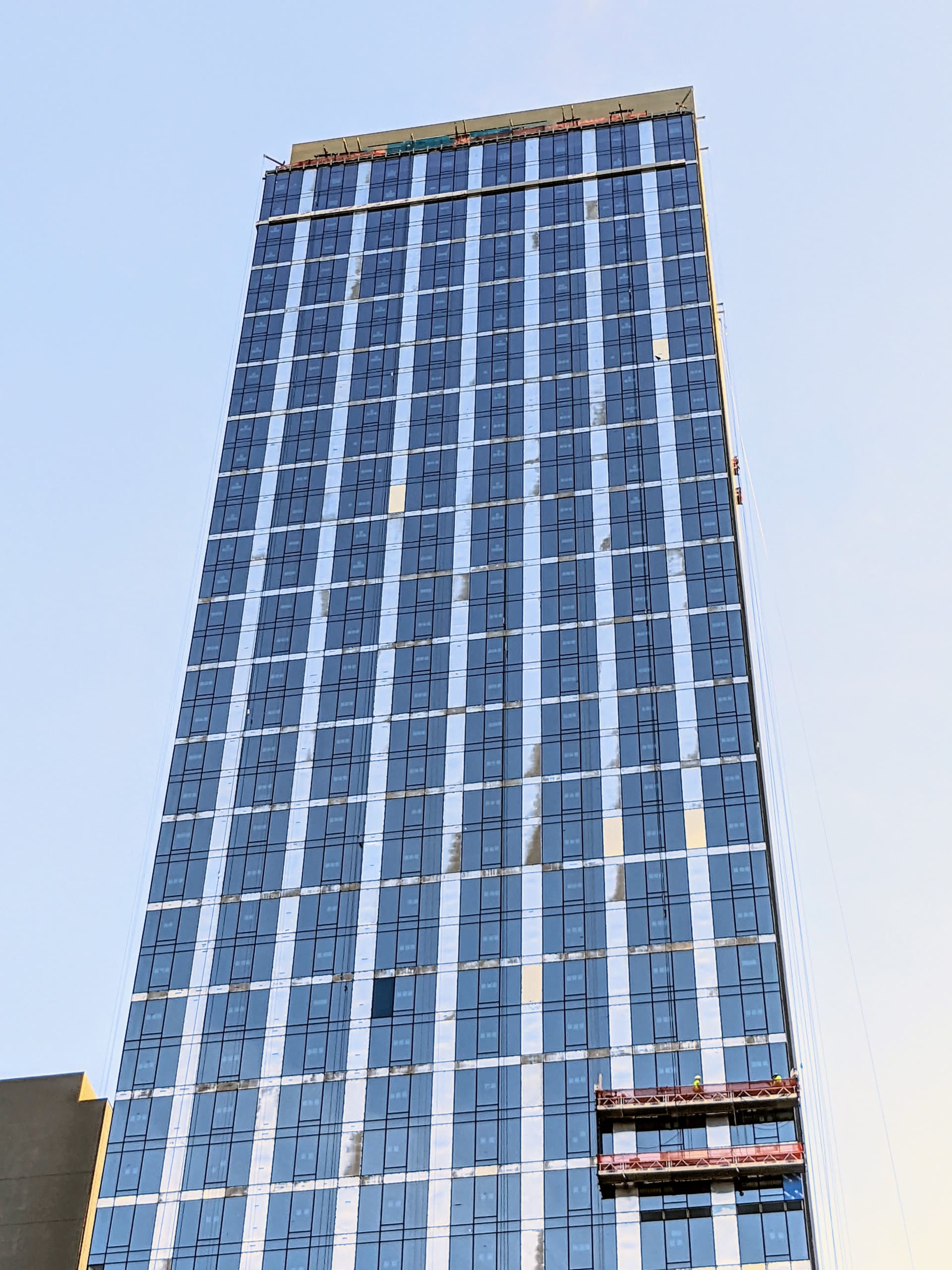 They continue to work on fixing the façade. For the first time, they are finally starting to (re)install the 3D bits that will give the façade some texture.