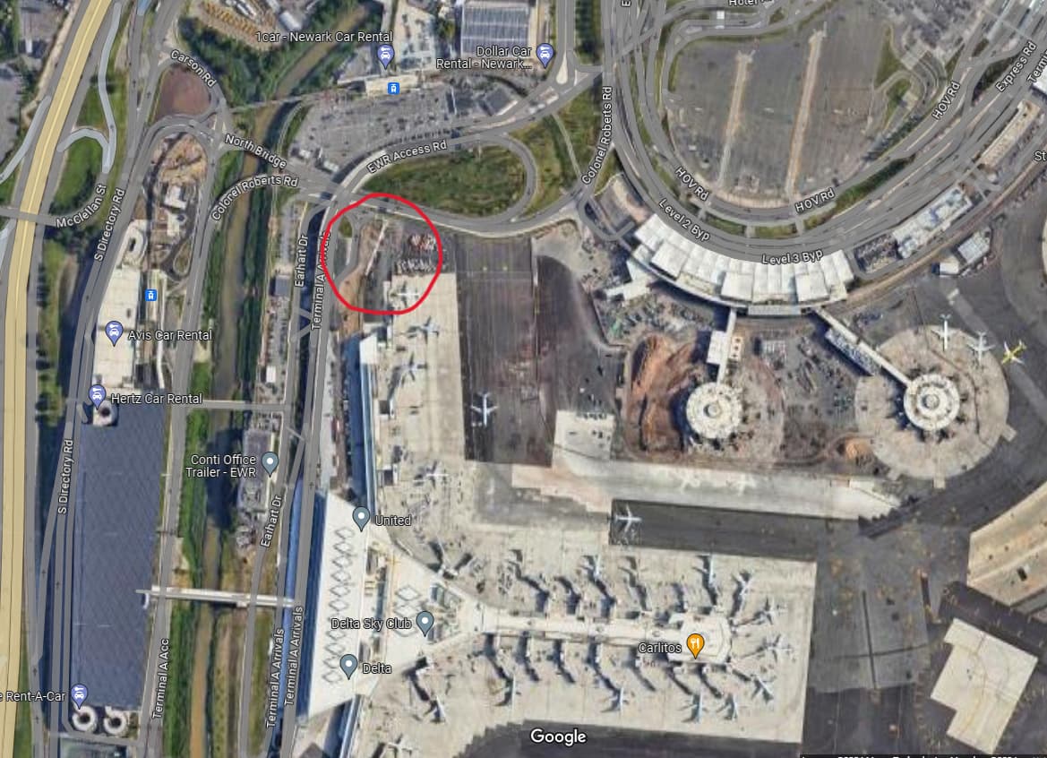 Below is a google maps image of the area that was broken before it broke. There was no construction equipment in this area when I noticed it was in that state for the two times I went to the airport to pick up and drop off someone in a span of 2 weeks.